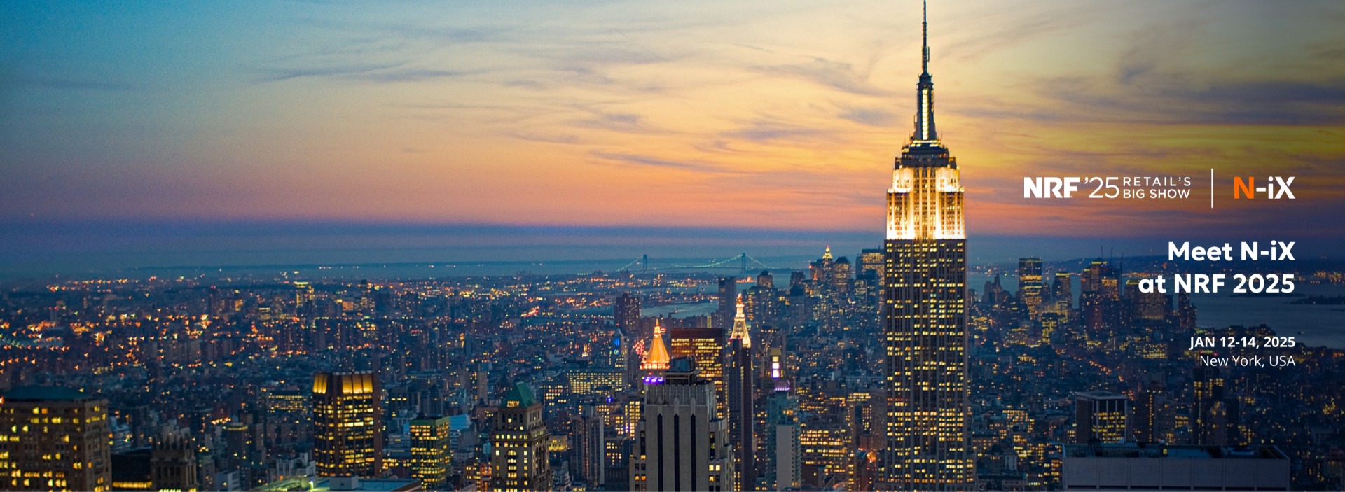 Kick off 2025 with N-iX at Retail’s Big Show, January 12-14, at the Jacob K. Javits Convention Center in New York City. As a trusted global software solutions and engineering services company, we will share how N-iX helps redefine processes and elevate customer experiences in retail and e-commerce with advanced technology solutions.
