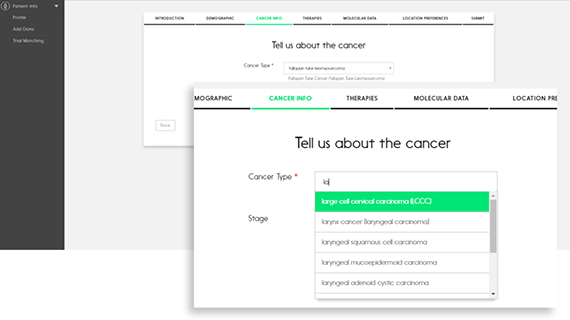 In the Cure Forward project, the development process is tightly connected with the elements of the UX design. For instance, when a patient enters the cancer type, the system shows them appropriate fields which differ depending on a cancer type. So the user doesn’t have to spend time and put much mental effort to fill it in. It means the user is not asked to fill in the cancer stage if their cancer type has no stages.