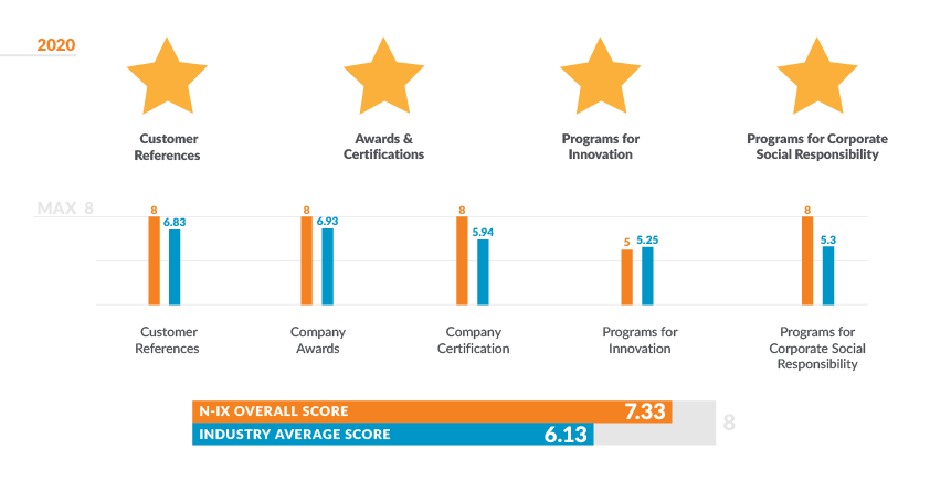 In 2017, N-iX received a star distinction for Customer References, Programs for Innovation and Programs for Corporate Social Responsibility.