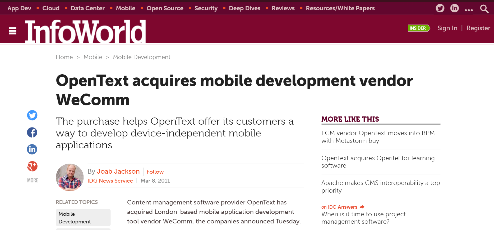Dedicated development team for OpenText developed a new generation of weComm, a software platform acquired by OpenText to help make its numerous products available through the mobile.