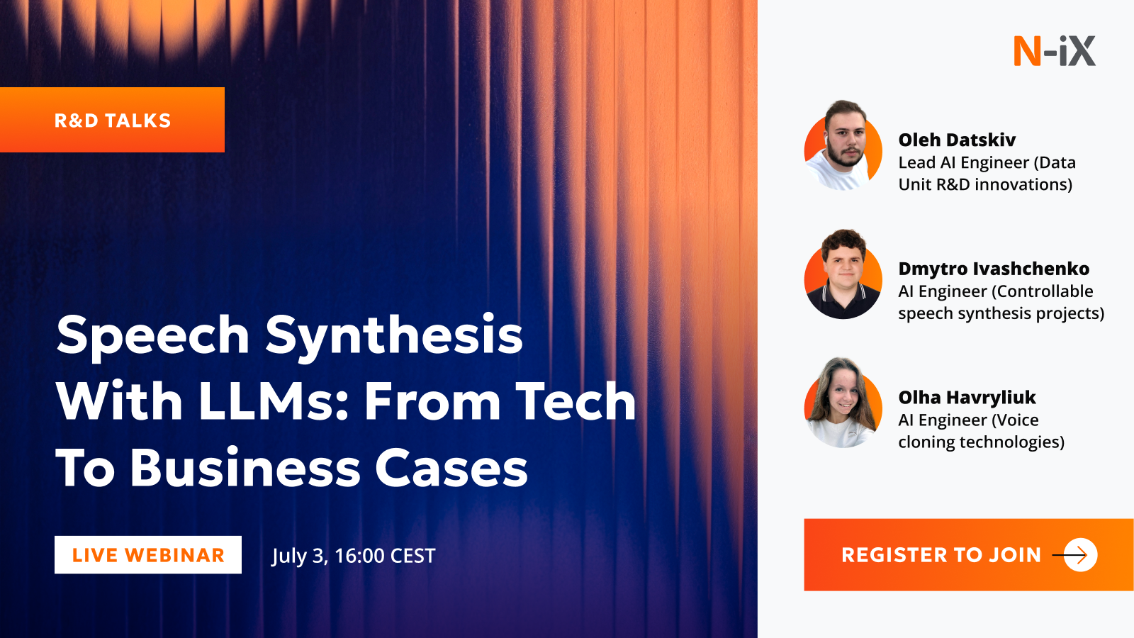We're starting off the N-iX R&D Talks with a hot topic: Speech Synthesis in the era of LLMs and Multimodality.